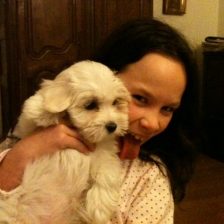 bonjour Merci de demander des nouvelles d’Elfie.( coton de tulear ) Elle va super bien. Elle est intrépide, une boule de poils adorable. Elle s’amuse avec une de nos chattes, joue tout le temps, préfère le canapé à ses paniers (la journée) elle est encore trop petite pour y monter toute seule. Je ne regrette pas du tout mon achat tellement elle donne à la famille de la joie et des crises de rire avec ses pitreries!! En promenade, elle attire tout le monde et prend un malin plaisir à faire sa belle! Toujours demandeuse de câlins, de bisous et croyez-moi elle n’en manque pas! Je vous joins 2 photos. Elle pèse 3 kg mais ce n’est pas une grosse mangeuse… Cordialement Martine Lamamy